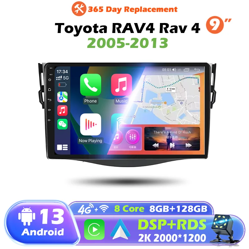 Novo 9 "android 12 rádio do carro 2din para toyota rav4 2005-2013 carplay navegação gps automática 4g wifi dsp dvd reprodutor estéreo multimídia