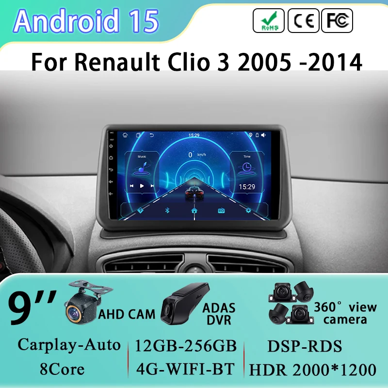 Android 15 para renault clio 3 2005 -2014 carro auto multimídia player de vídeo navegação gps estéreo 4g wifi unidade principal de rádio não 2din