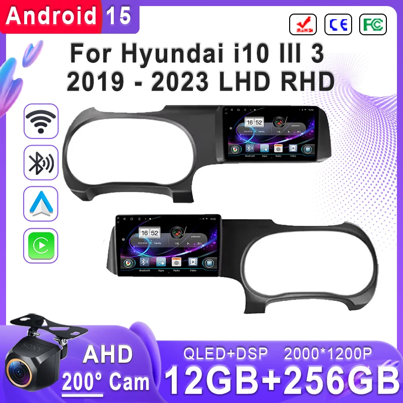 Plug and play para hyundai i10 iii 3 2019 - 2023 lhd rhd unidade principal navegação gps cpu android 15 2k incell tela traço cam wifi