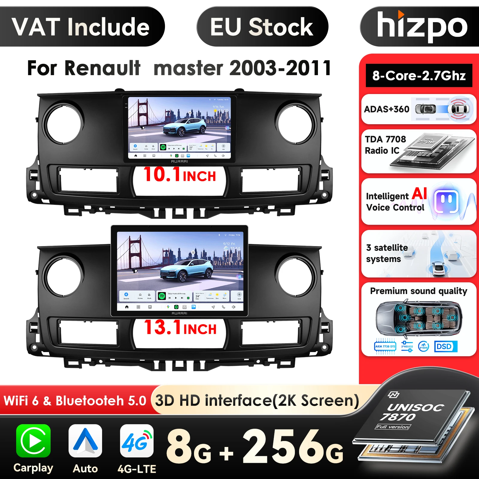 Hizpo 13.1 polegada rádio do carro para renault master 2003 - 2011 carplay android auto multimídia player estéreo 4g sistema inteligente do carro ai voz inteligente qled 1920*1200 2k tela 3d autoradio monitor de áudio estéreo 360 ° Câmera ADAS TDA7851 Amplificador HeadUnit Bluetooth