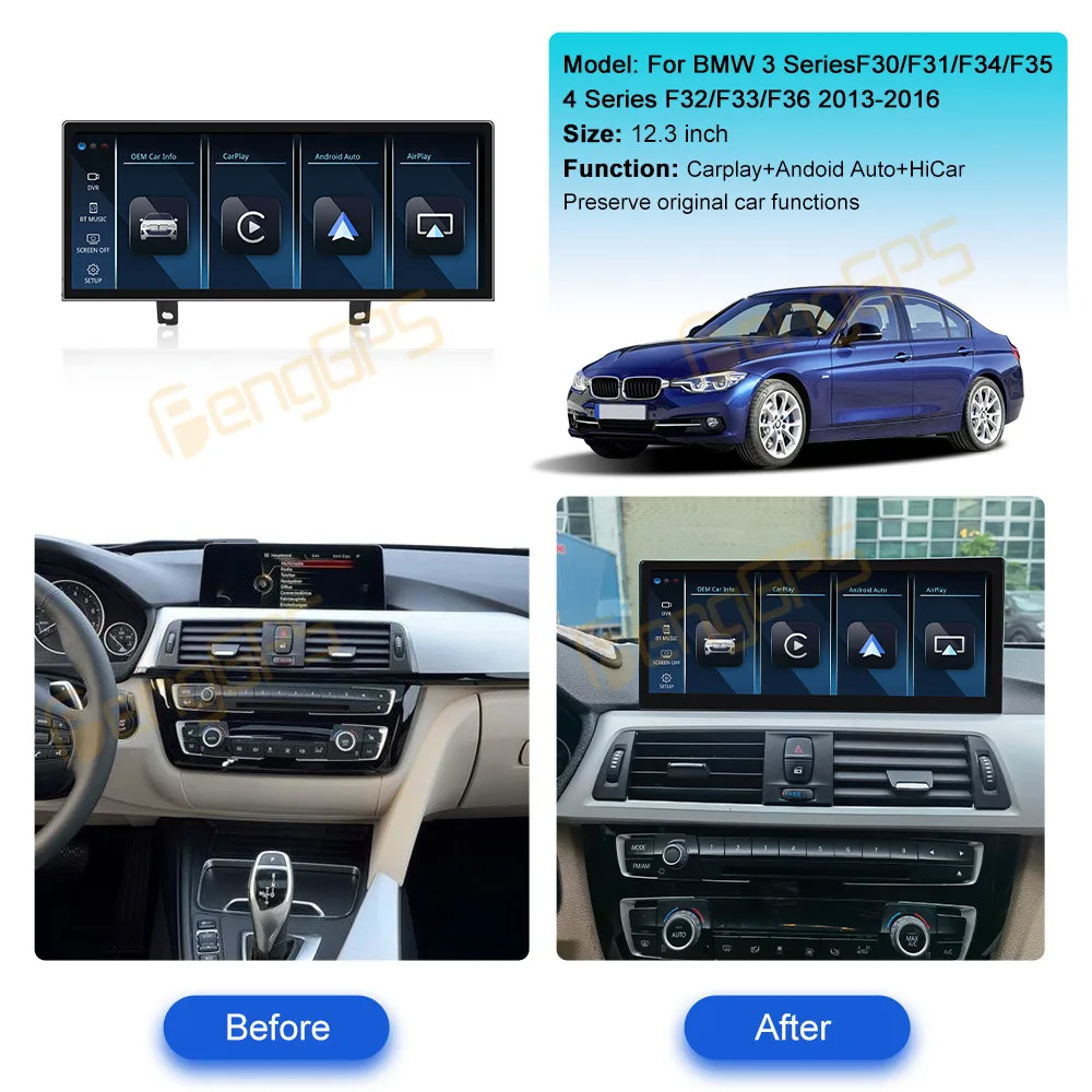 Rádio de Carro Linux CarPlay de 12.3\" para BMW Série 3 F30 F31 F34 F35 Série 4 F32 F33 F36 2013-2016, Player Multimídia com Tela Sensível ao Toque e GPS