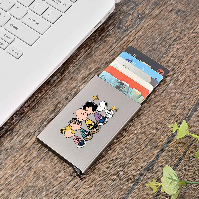 Carteira Inteligente RFID Snoopy, Porta-Cartões de Metal Fino e Minimalista, Carteiras Pop-Up para Homens e Mulheres, Pequena Bolsa, Presente