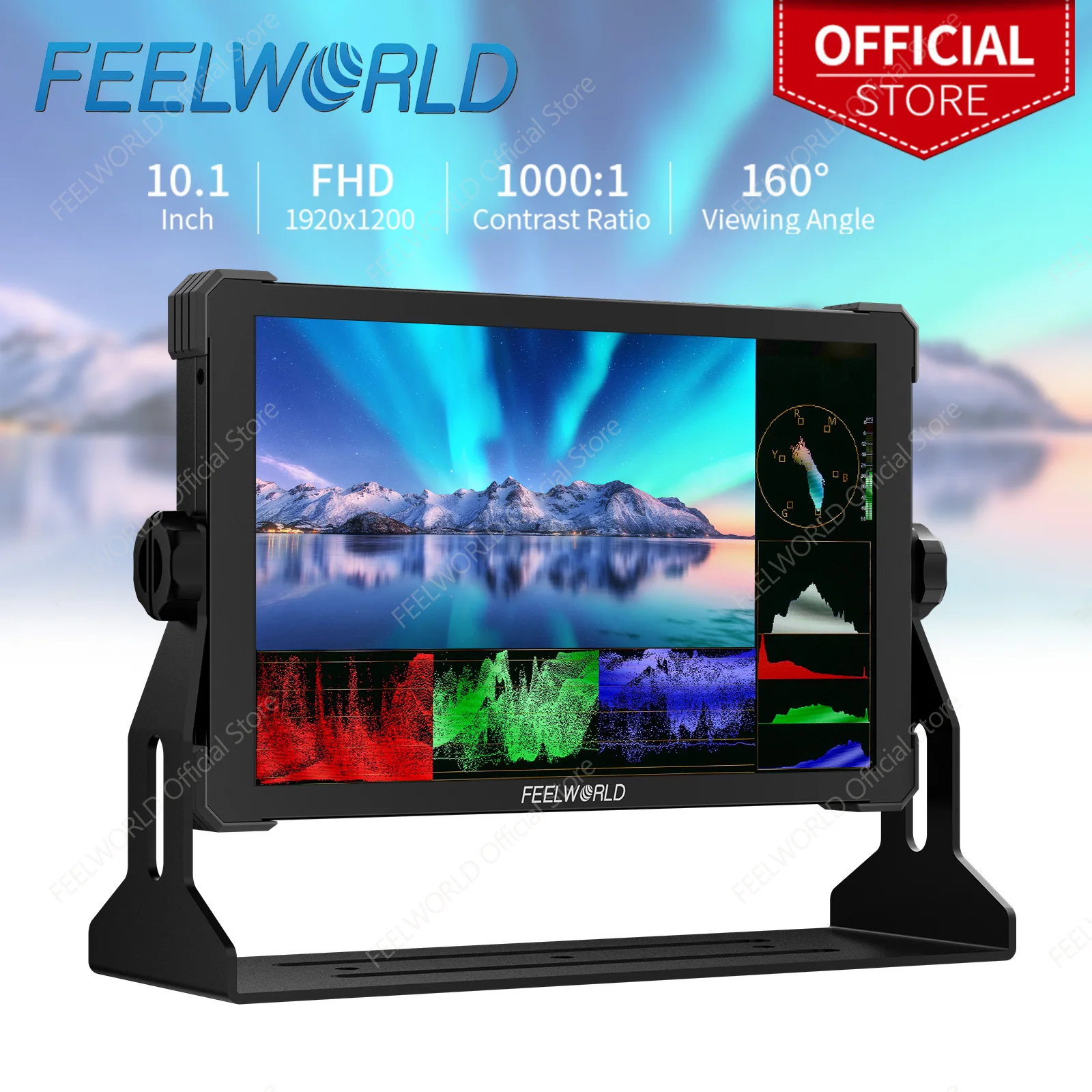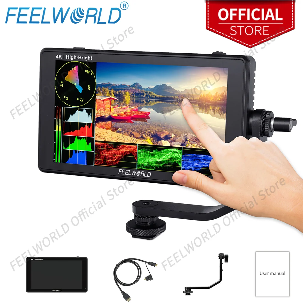 FEELWORLD LUT11H Monitor IPS de 10,1 polegadas 2000nit 4K HDMI I/O 1920x1200 3D LUT Touch Screen F970 Kit de alimentação externa