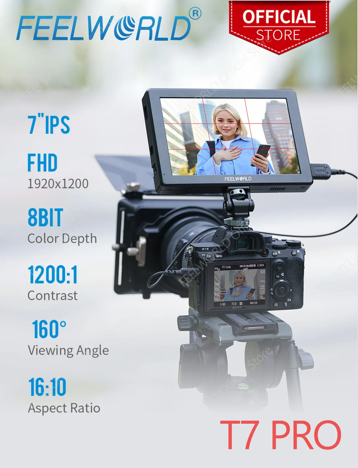 Monitor de Campo FEELWORLD T10 de 10.1 Polegadas em Alumínio para Câmeras DSLR com Tela Sensível ao Toque 4K HDMI NP-F e Kit de Instalação e Alimentação Externa para YouTube