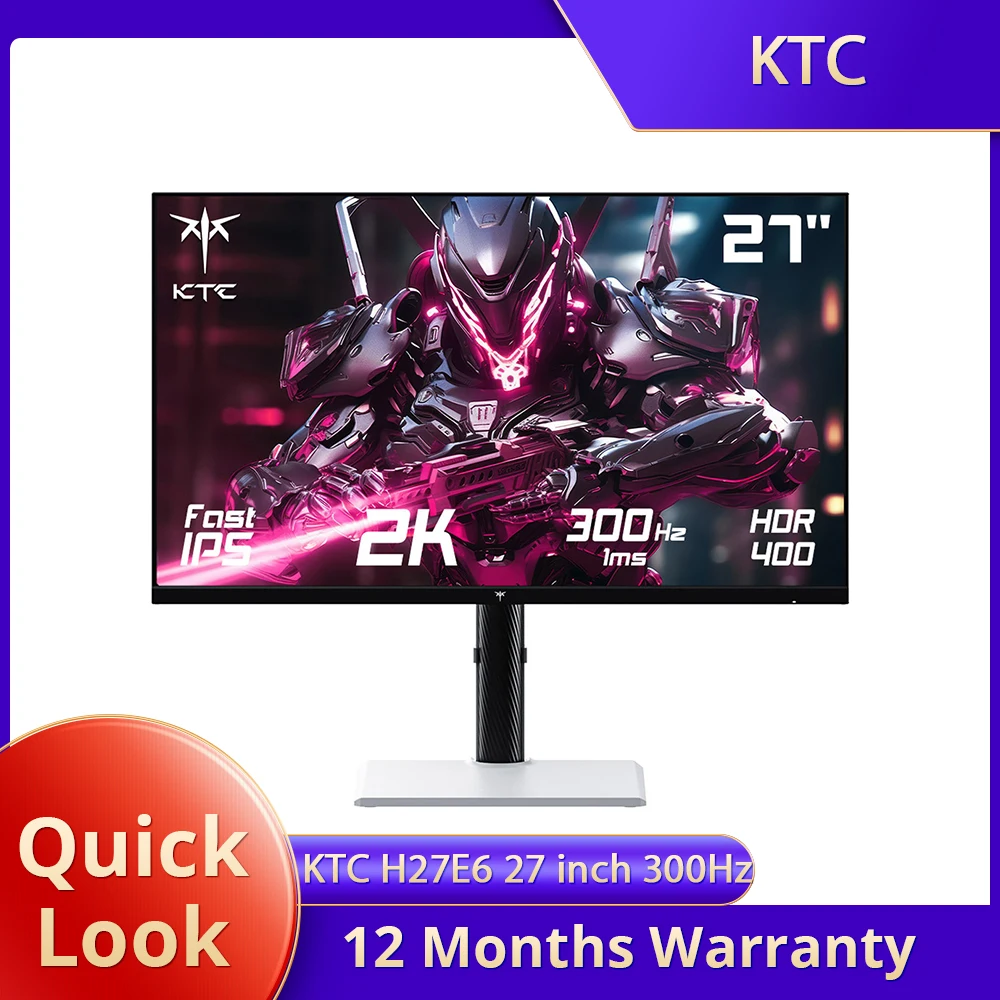 Em estoque! Monitor de jogos KTC H27E6 de 27 polegadas, tela IPS rápida QHD 2560*1440, taxa de atualização de 300 Hz 240 Hz, HDR 400, tempo de resposta de 1 ms, FreeSync e G-Sync, 144% sRGB, VESA montável, 2 * HDMI 2.1, 2 * DP 1.4, 1 * USB 2.0, 1 * Auricular
