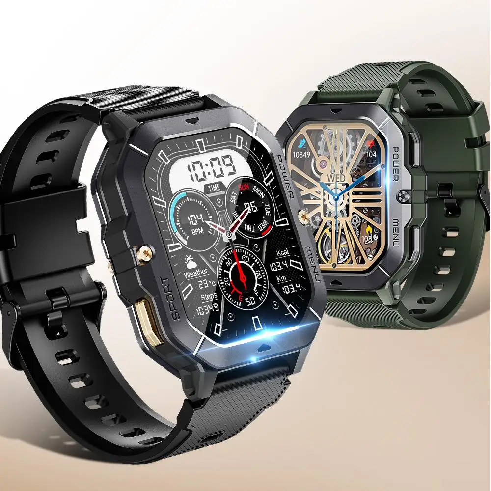 Relógio inteligente C28 com tela de 2,02 polegadas, bateria de longa duração, à prova d'água, monitor de frequência cardíaca/SpO2, chamadas Bluetooth e mais de 100 modos esportivos