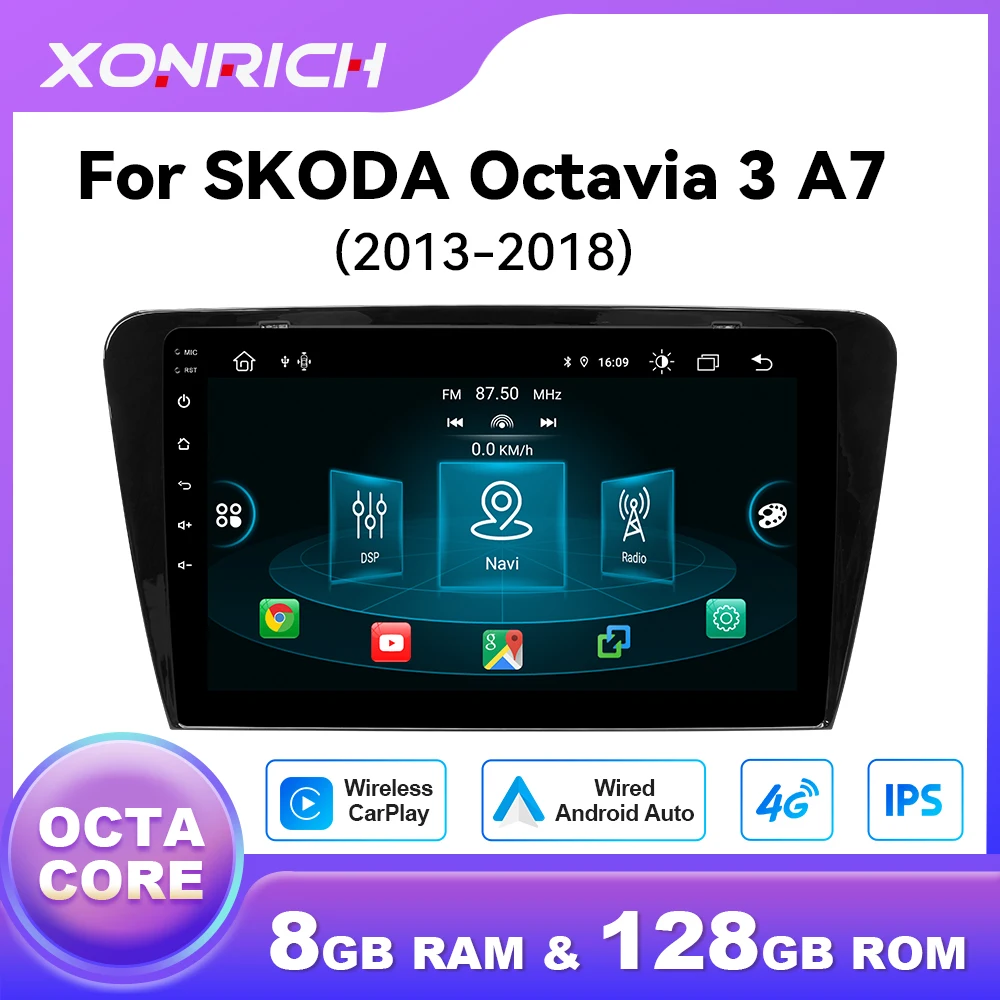1920*720 ips sem fio carplay android 14 reprodutor de rádio do carro para skoda octavia 3 a7 2013-2018 8 núcleo multimídia gps 4g wifi dsp rds