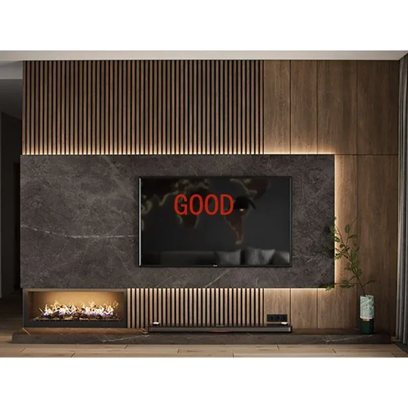 Madeira barata do armário do suporte da tevê do projeto profissional 80" polegadas com lareira ouro brilhante