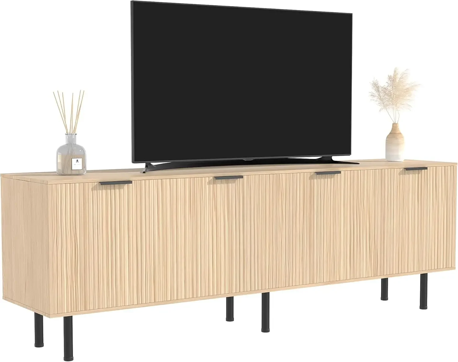 Suporte de tv minimalista nórdico, 80 espaços, console de mídia com ajustável, centro de entretenimento com armazenamento, canelado para sala de estar