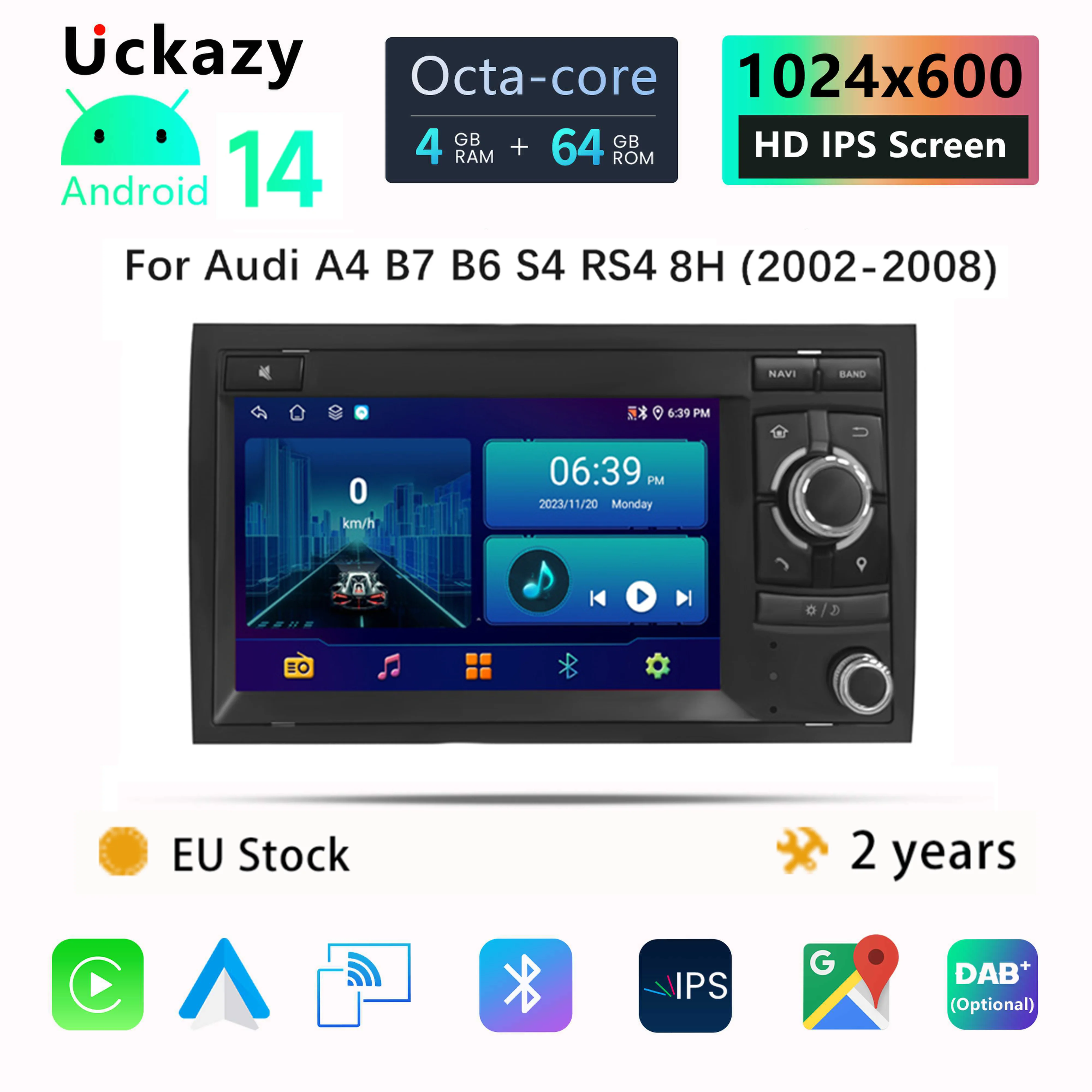 4 núcleo 32gb rádio do carro android 14 sem fio carplay auto multimídia player para audi a4 b6 b7 rs4 8e bt unidade de navegação gps navegação wifi autoadio