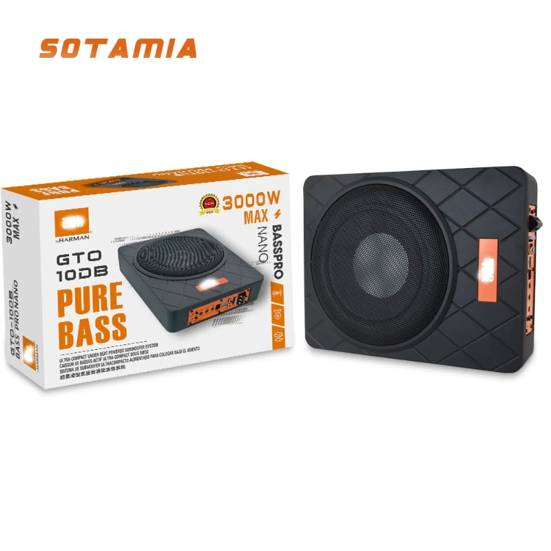Subwoofer de assento de 10 polegadas, 150 watts, automotivo, ativo, fino, caixa de subwoofer automotivo com amplificador, sistema de áudio