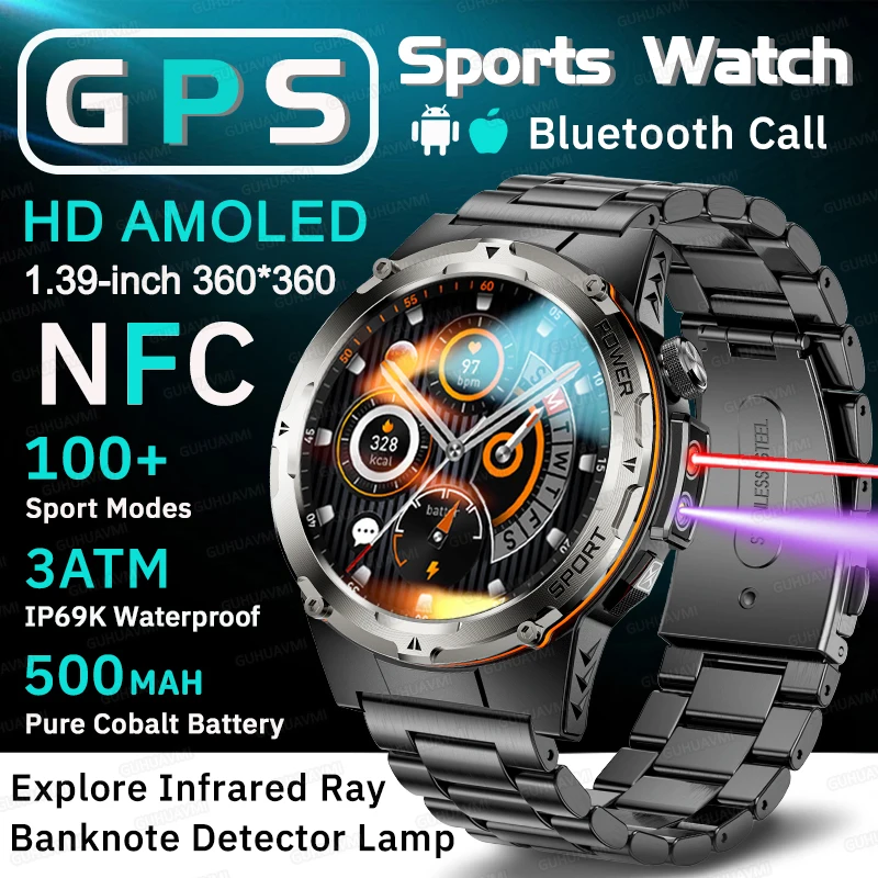2025 ao ar livre novo gps esportes relógio inteligente masculino hd amoled nfc 3atm à prova dwaterproof água 500mah infravermelho bluetooth chamada relógio para android ios