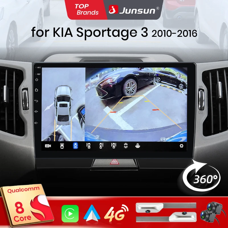 Junsun qualcomm 8 núcleos 360 câmera sem fio carplay android auto rádio do carro para kia sportage 3 2010-2016 gps