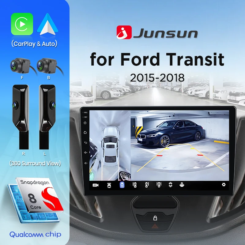 Junsun Android Auto 360 ° Rádio automotivo Ford Transit 2015 2016 2017 2018 Multimídia Sem Fio CarPlay SWC Nav 8 núcleos RDS DSP FM