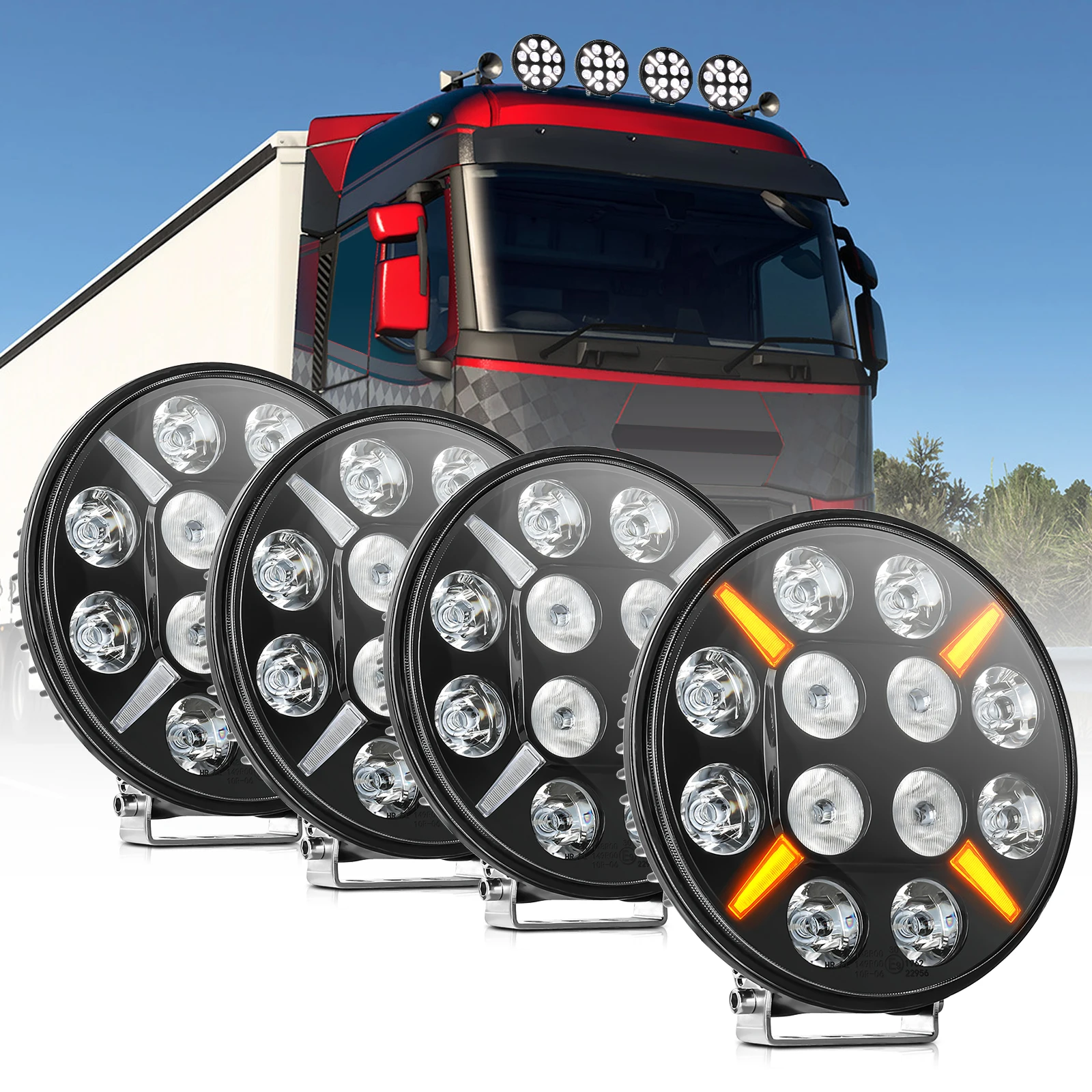Un 9 Polegada caminhão holofote 6000k branco completo led âmbar luz de nevoeiro luz estroboscópica caminhão luz de condução 12v 24v para offroad carip68
