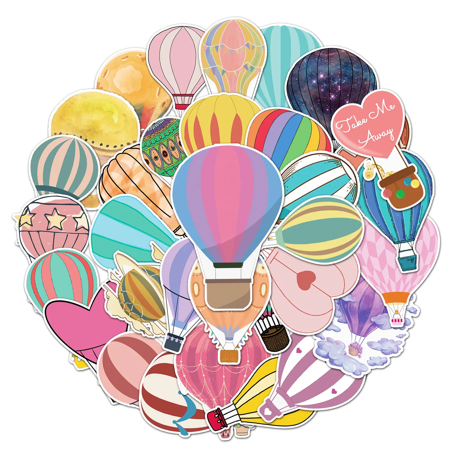 Adesivo personalizado dos desenhos animados do balão de ar quente, bonito Little Fresh Graffiti, adesivo impermeável, mala criativa, notebook, geladeira, 50pcs