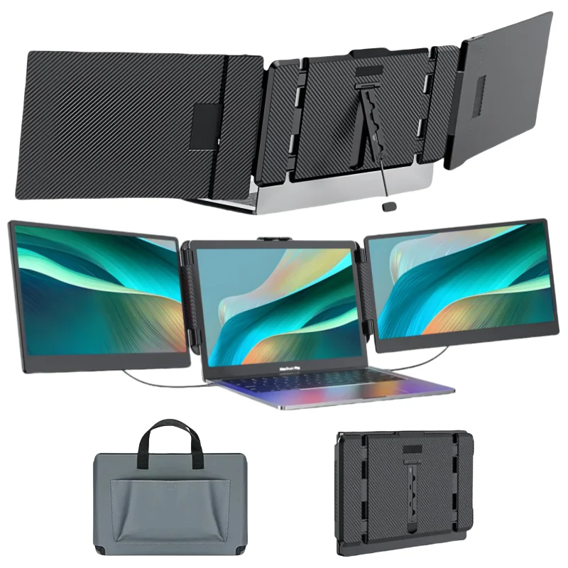Triplo 13 14 Polegada tela lcd computador 3 display portátil dobrável monitor do portátil extensor tela tripla monitor de jogos de escritório