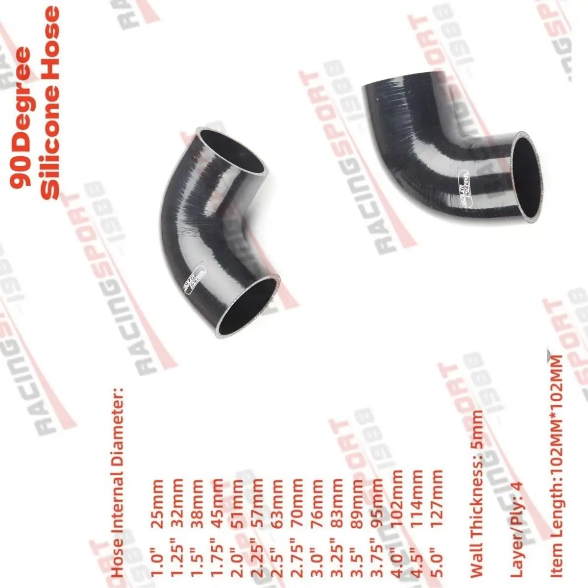 A + 4 camadas/camadas 1/1.25/1.5/1.75/2/2.25/2.5/3/3.5/4/4.5 Polegada id 90 graus turbo silicone mangueira acoplador tubo preto