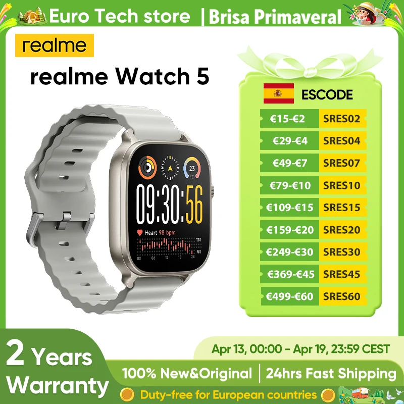 Smartwatch realme Watch 5 com GPS, NFC, Tela AMOLED de 1,97 polegadas, 14 dias de duração da bateria, Bluetooth 5.3 para realme 14 Pro plus e realme GT 7 Pro