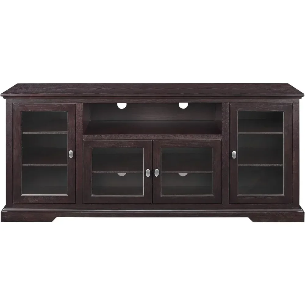 Console de TV de armazenamento com porta de vidro clássica para TVs de até 80 polegadas, 70 polegadas, marrom expresso