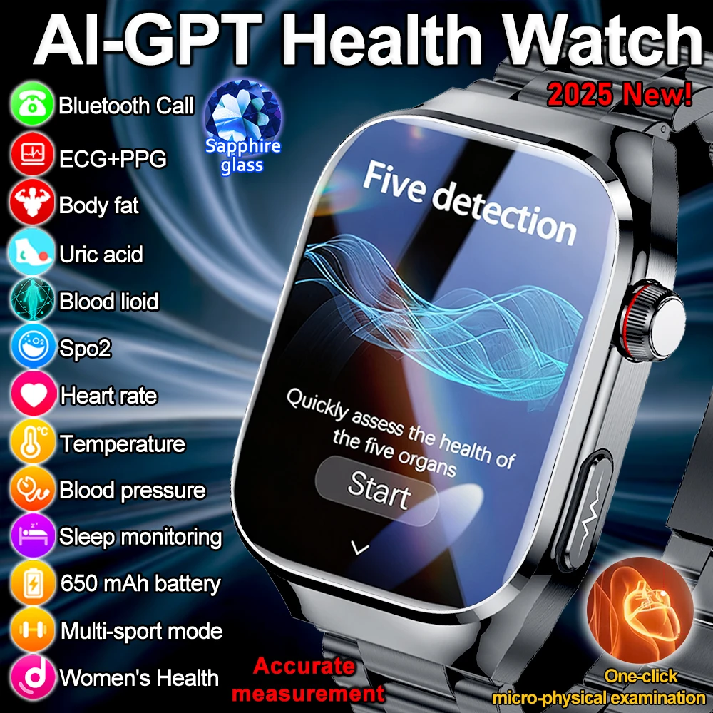 Novo Smartwatch 2025 para XIAOM1 com ECG+PPG, Monitoramento de Gordura Sanguínea, Ácido Úrico, Frequência Cardíaca, Pressão Arterial, Chamada Bluetooth para Homens e Mulheres