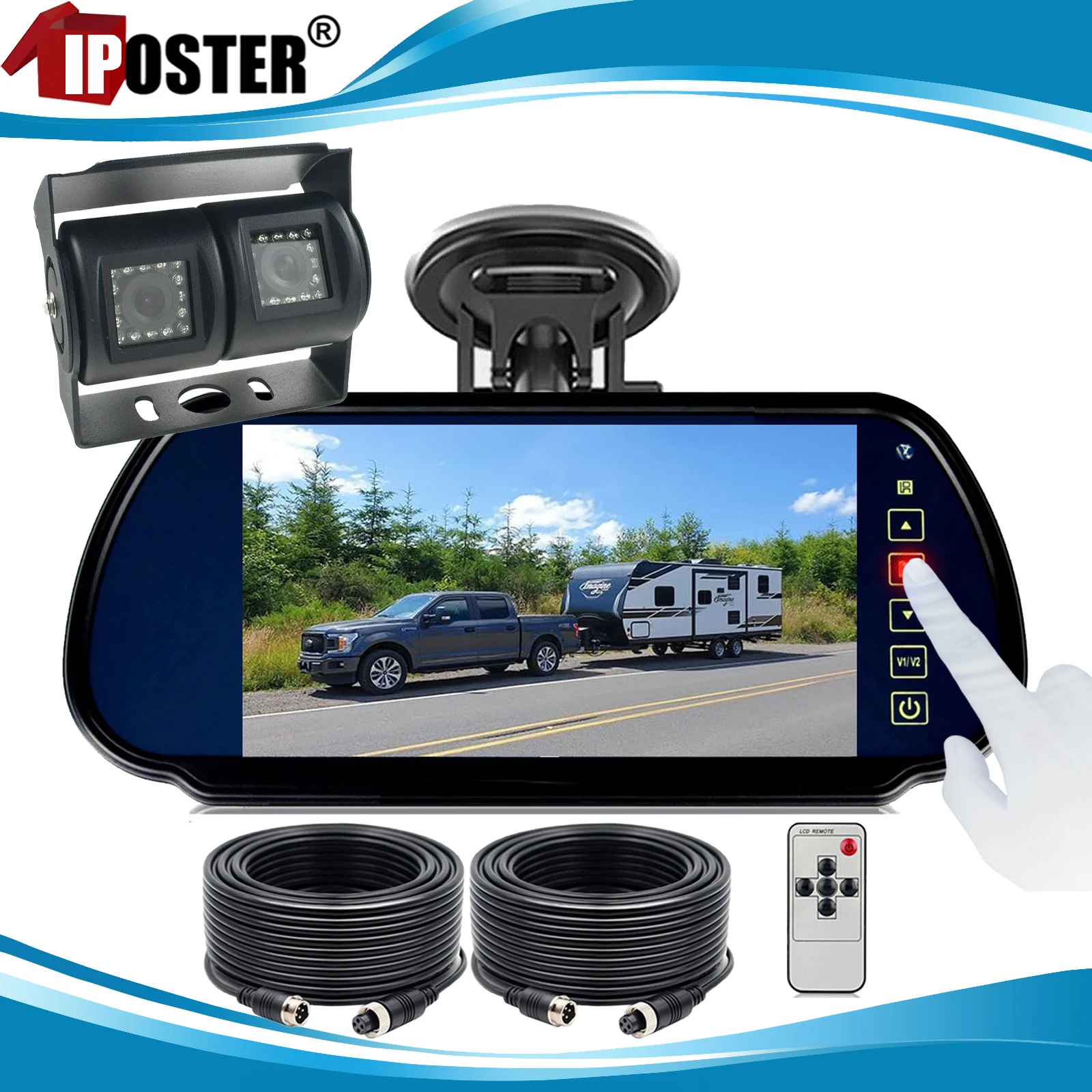 Iposter preto dupla lente ccd invertendo câmera sistema de câmera de visão traseira do carro com monitor de 7 polegada kit monitor câmera backup para caminhão