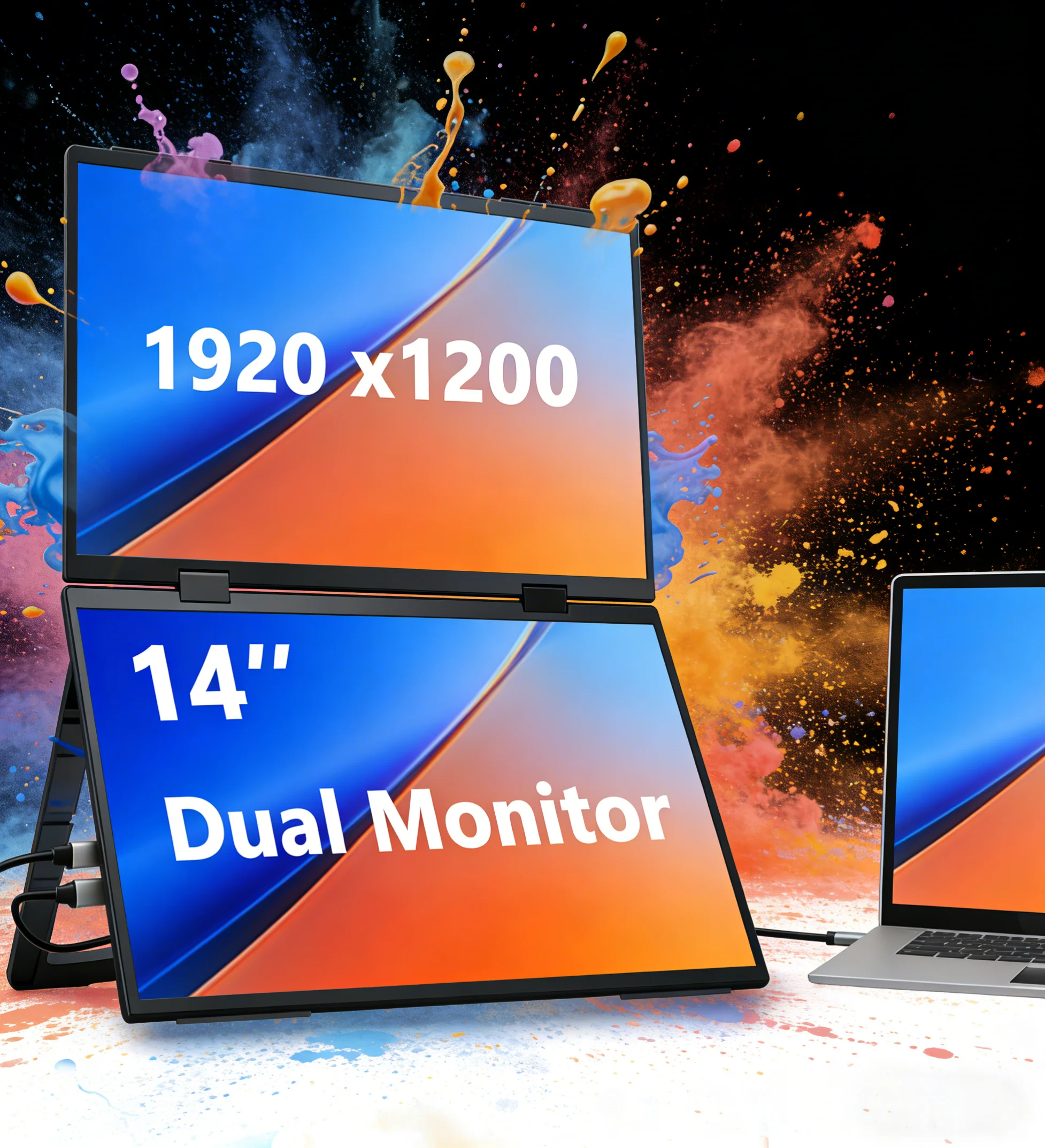 Monitor Portátil de Tela Dupla de 14 Polegadas 1920x1200P, Extensor de Tela Tripla para Laptop, Economiza Espaço, Display Secundário