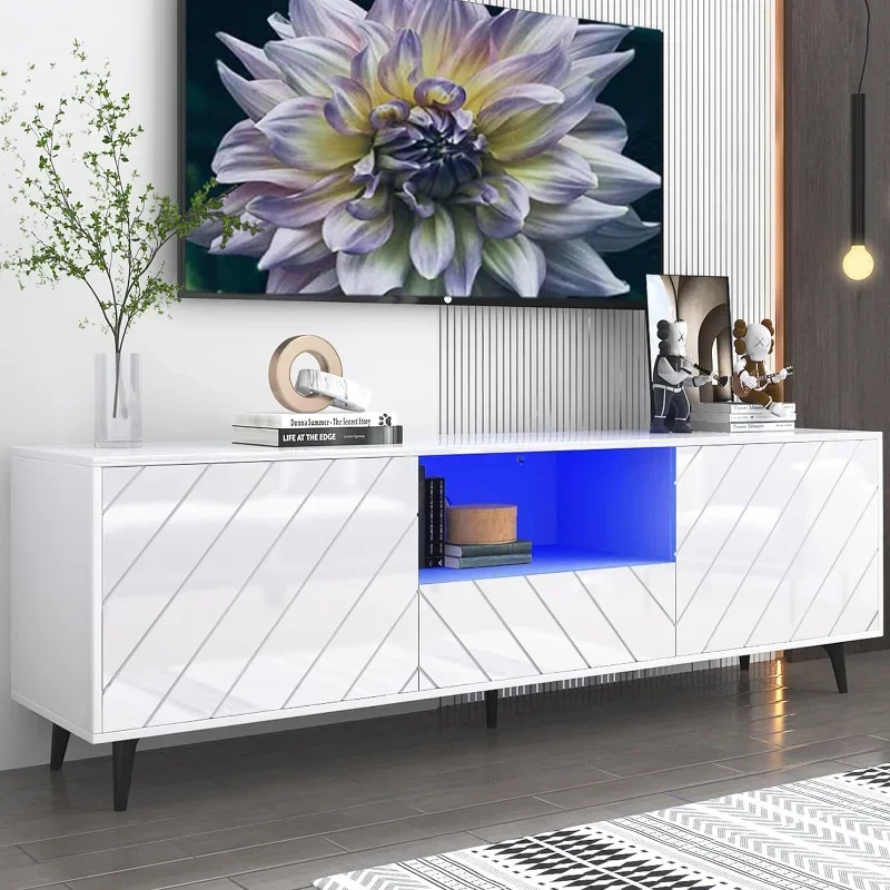 Suporte de TV LED de 6 e 71 polegadas para TV de 75/80 polegadas, centro de entretenimento moderno com gaveta de armazenamento, suporte de TV de alto brilho
