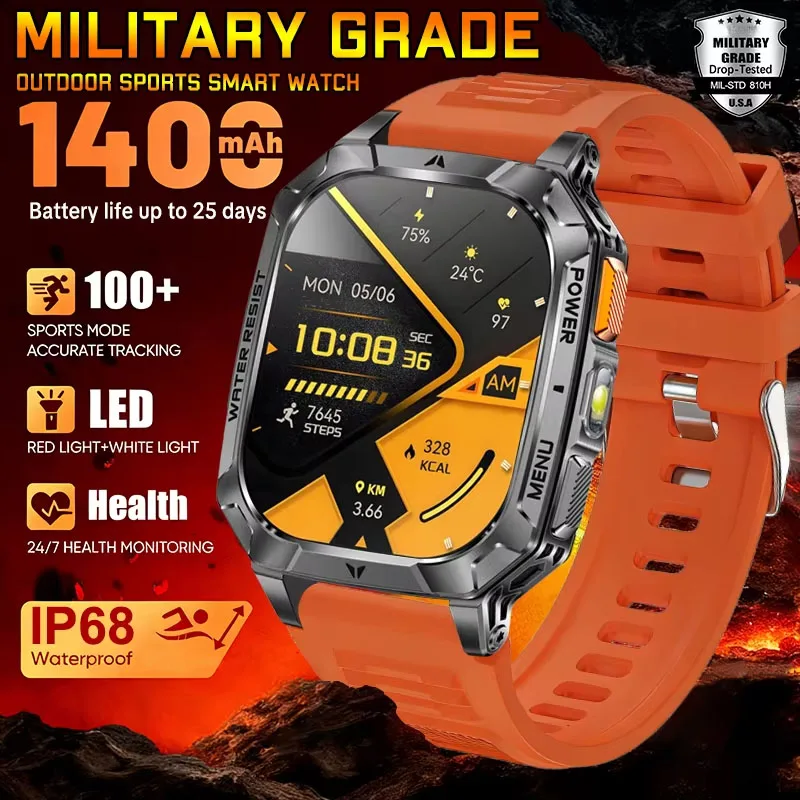 Smartwatches com Chamada BT, Fitness, Esportes, à Prova d'Água IP68, Tela AMOLED 2.01", Relógio Masculino com Bateria Inteligente de 1400 mAh, Grau Militar, Novo 2026