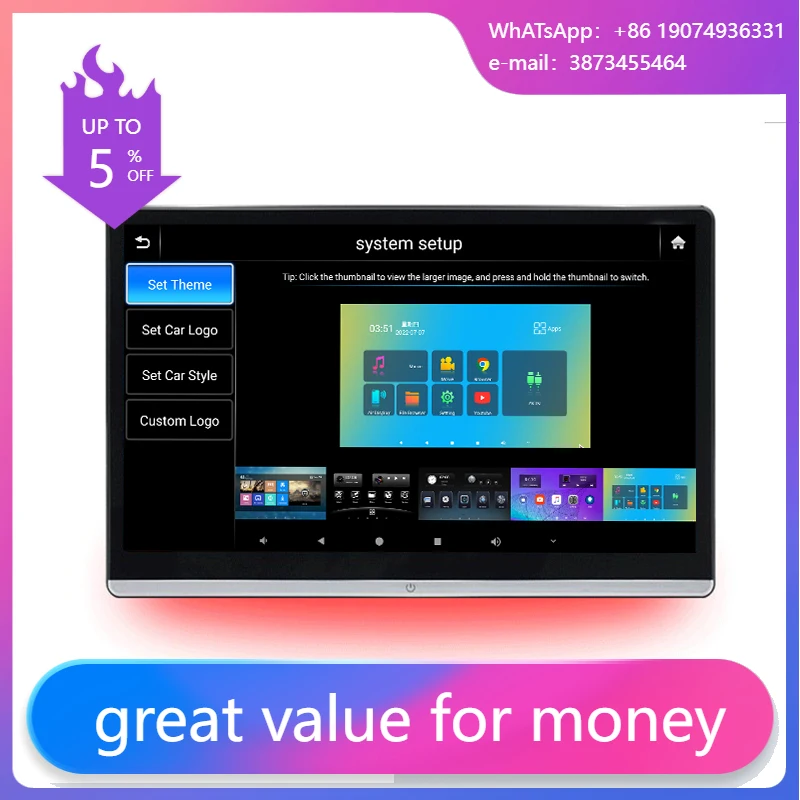 Novo Monitor de Encosto de Cabeça para Carro de 14 Polegadas com Tela Sensível ao Toque HD IPS Android 14, Smart TV, Reprodutor de Entretenimento para Assento Traseiro, USB, 1 Ano de Garantia