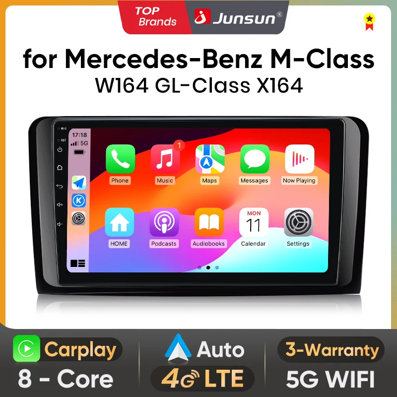 Junsun 8 núcleo sem fio carplay android auto rádio do carro para mercedes benz ml classe w164 gl classe x164 4g wifi navegação gps