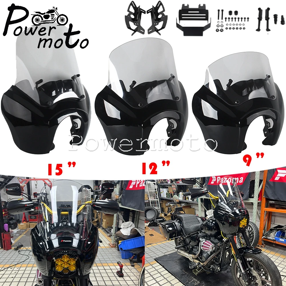 Farol Frontal de Motocicleta 9/12/15 Polegadas, Capa de Carenagem para Harley Softail Low Rider S 114 FXLRS 20-21 S 117 FXLRS 22-26