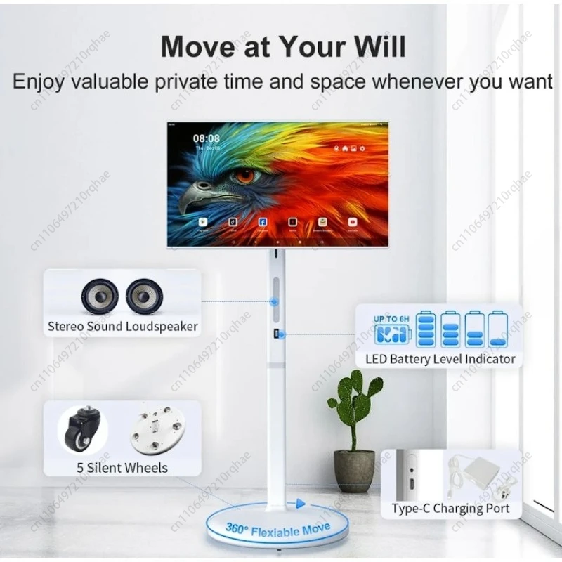 32 Polegada sinalização digital branco rodas móvel tv inteligente portátil full hd led retroiluminado android display tela de toque capacitivo