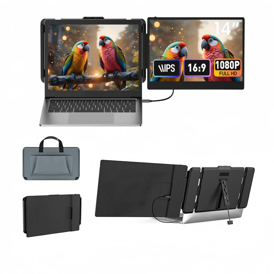Monitor LCD portátil de tela dupla de 14 polegadas compatível com laptop Mac/Win/Chrome de 12-17 polegadas com suporte ajustável