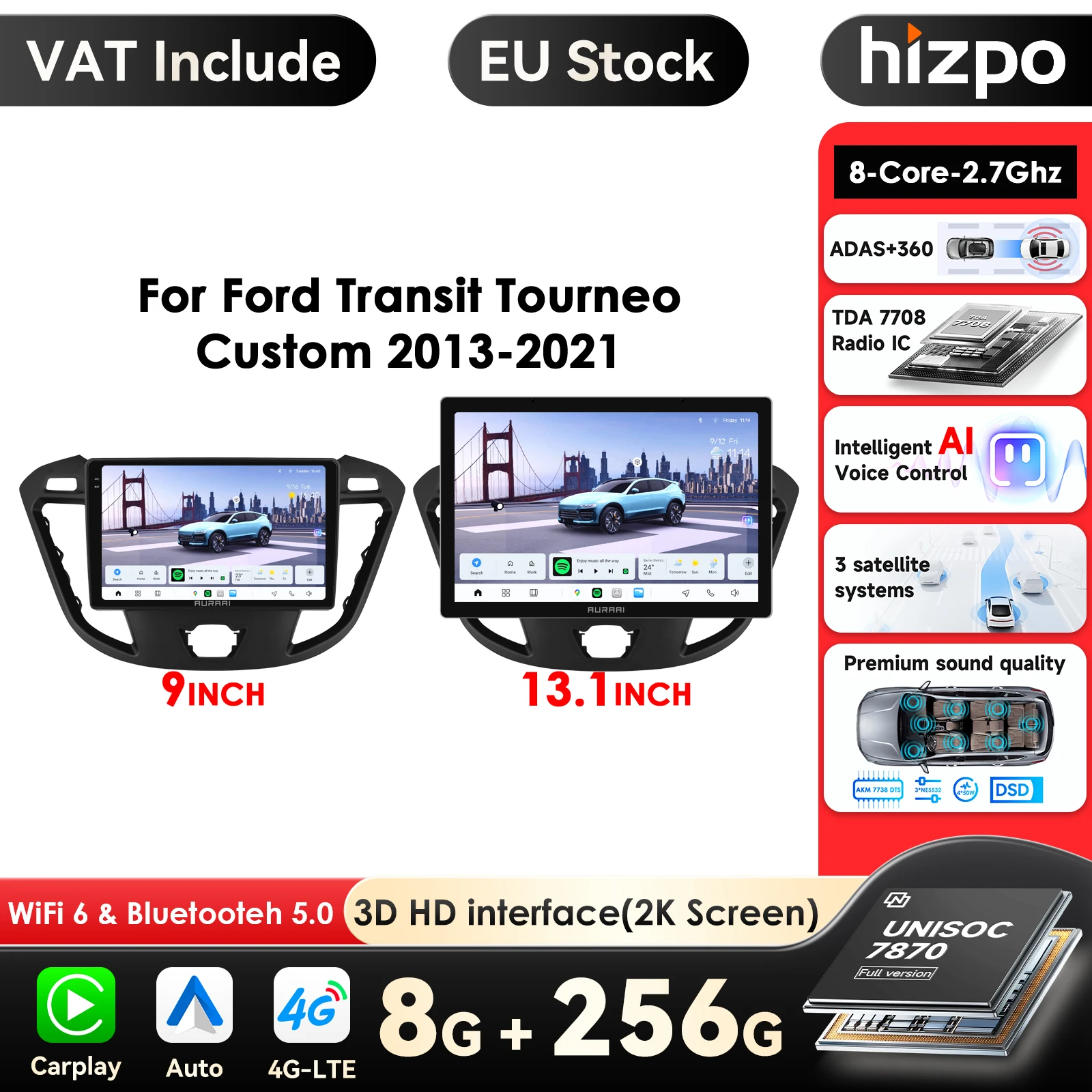 Hizpo Rádio Automotivo 2 Din Android 14 com Carplay 4G-LTE de 9 Polegadas para Transit Tourneo Custom 2013 - 2021, Reprodutor de Vídeo Multimídia, GPS, DSP, WIFI, Sistema Inteligente Automotivo, Voz AI, Tela QLED 1920*1200 2K, Display 3D, Autoradio, Monitor de Áudio Estéreo, Visão 360 ° Câmera ADAS