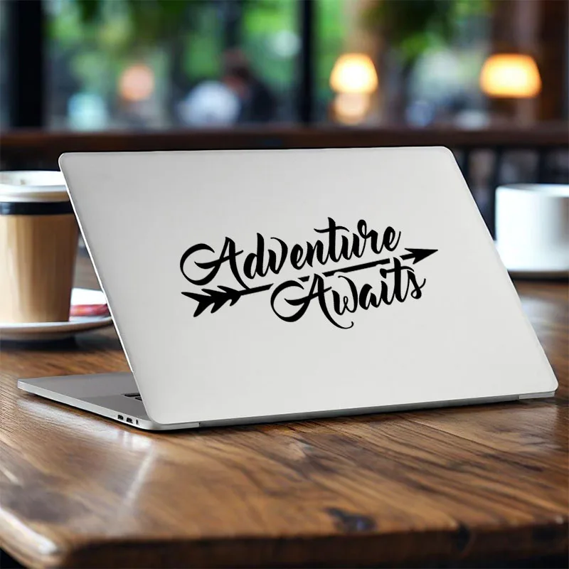 Decalque para Laptop 'Aventura à Espera': Adesivo Vinil Motivacional Removível para MacBook Pro 13 14 15, Dell XPS 15, Lenovo ThinkPad X1, ASUS ZenBook Pro + Skin Case Universal com Frase Inspiradora