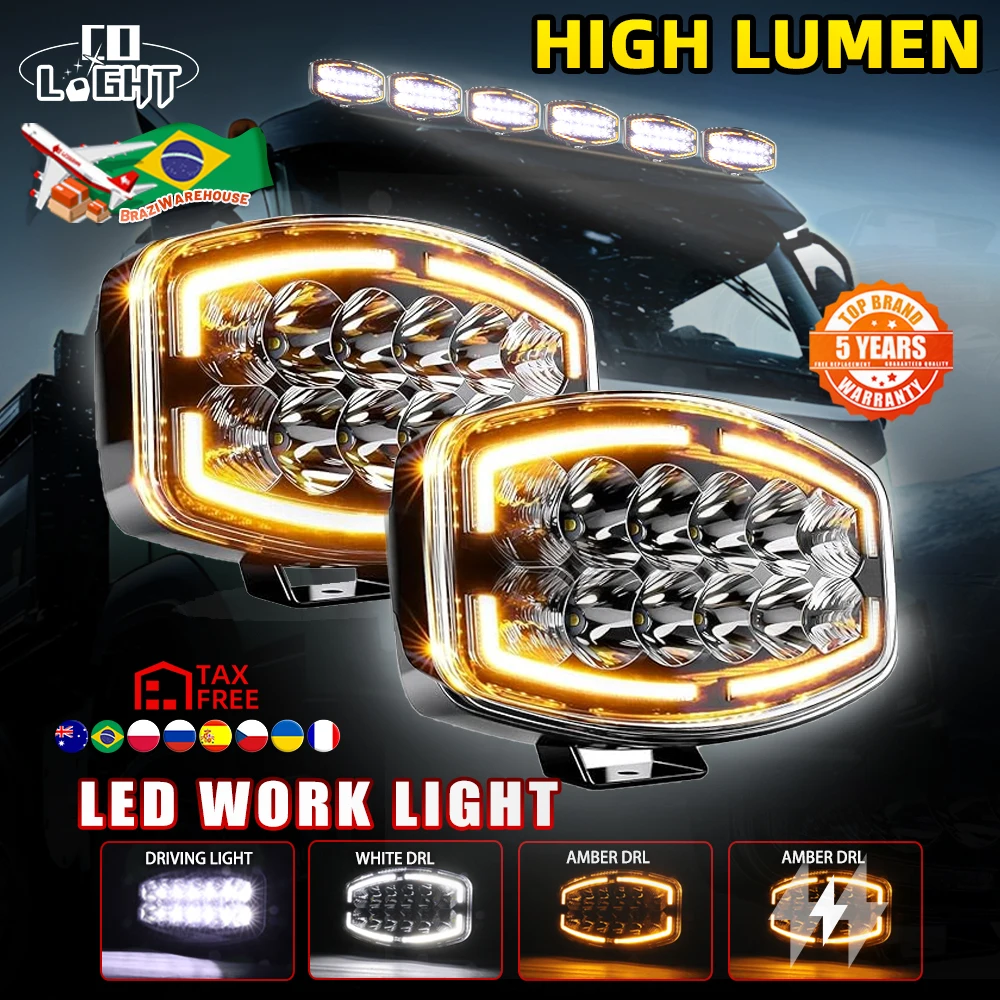 Luz de Trabalho LED CO LIGHT 10 polegadas para Caminhões Europeus, Farol Auxiliar de Busca, Luz de Condução, Farol Principal, Luz Auxiliar Branca Âmbar DRL 12V