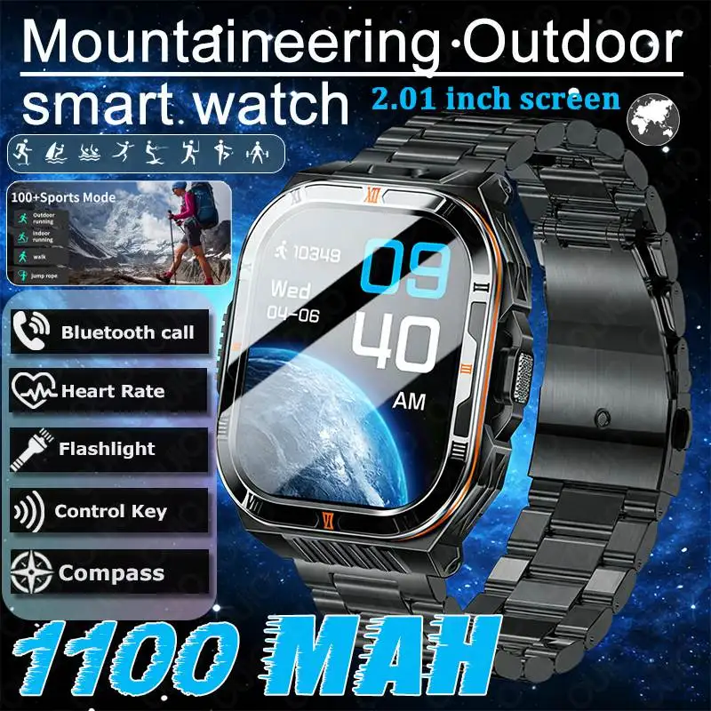 2026 novo 1100mah bateria grande relógio inteligente 2.01 Polegada lanterna bússola ip68 à prova dip68 água bluetooth chamada 100 + esportes relógio inteligente masculino