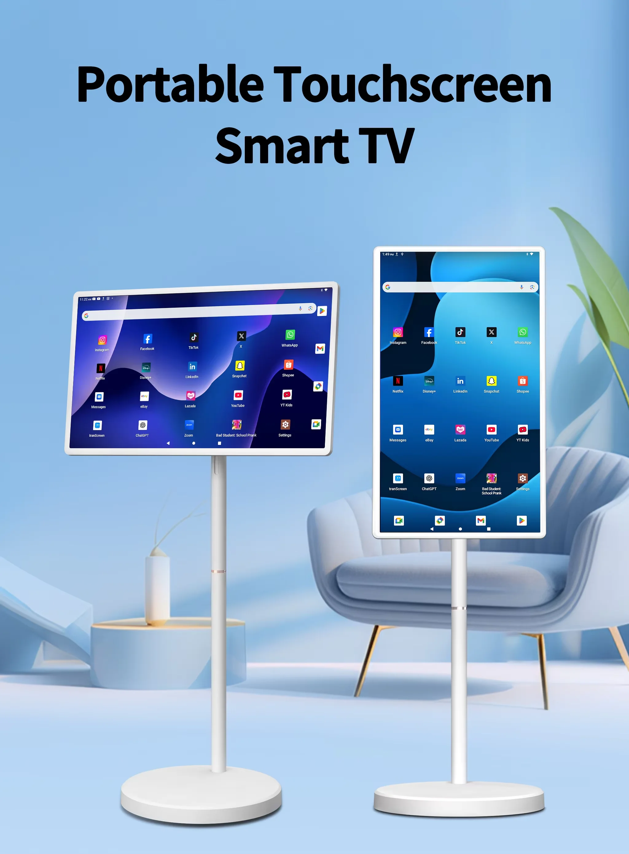 Smart TV, tablet com suporte de chão 6G + 128G com controle remoto, chamada de vídeo com câmera 2K, bateria integrada de 148 W, 32 polegadas Android 15