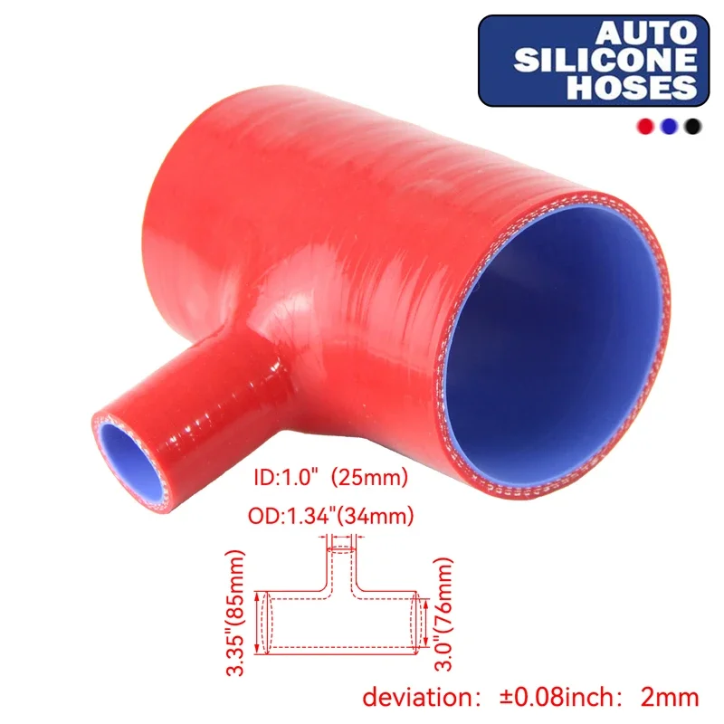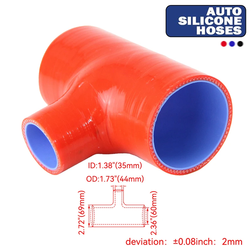 Acoplador de silicone de 3 camadas de 2,36 polegadas/60 mm Adaptador de mangueira em forma de T Turbo/BOV/tubo 35 mm ID