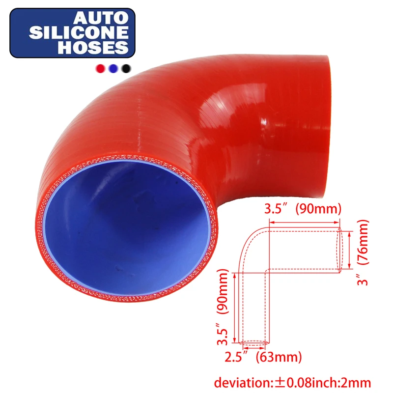 Tubo de admissão intercooler 2,5 "a 3" universal 63 mm a 76 mm ID mangueira de silicone redutora de 90 graus