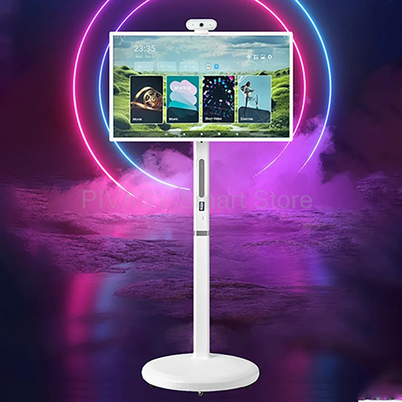 32-Polegada inteligente android portátil tv monitor rotativo tela de toque suporte 2160p resolução 12v fonte de alimentação led branco para casa