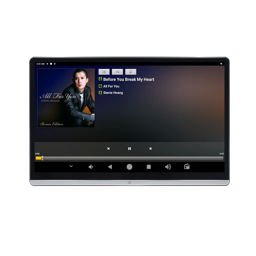 Monitor de Encosto de Cabeça para Carro com Tela Touch IPS de 14 Polegadas, Android Smart TV com Tela 4K e Reprodutor de DVD Integrado, Gancho para Encosto de Cabeça de Carro