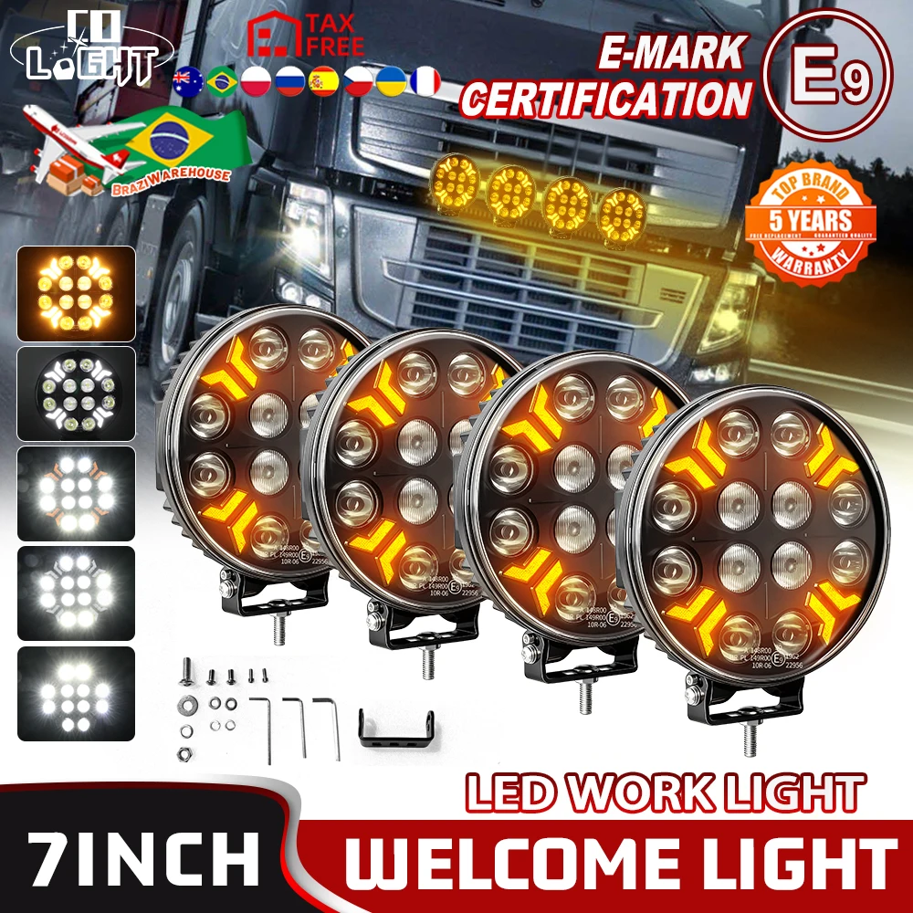 Co luz 9 polegada redonda e9 led luz de trabalho 12v 24v amarelo branco led drl fora da estrada nevoeiro lâmpada para caminhão trator 4x4 4wd acessórios do carro