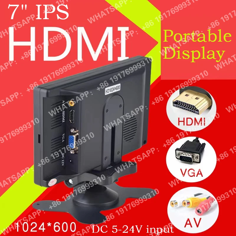 7 Polegada monitor de entrada av portátil hd 1080p vga monitor mini tela 1024x600 vga/av para raspberry pi/laptop/câmera segurança/cctv