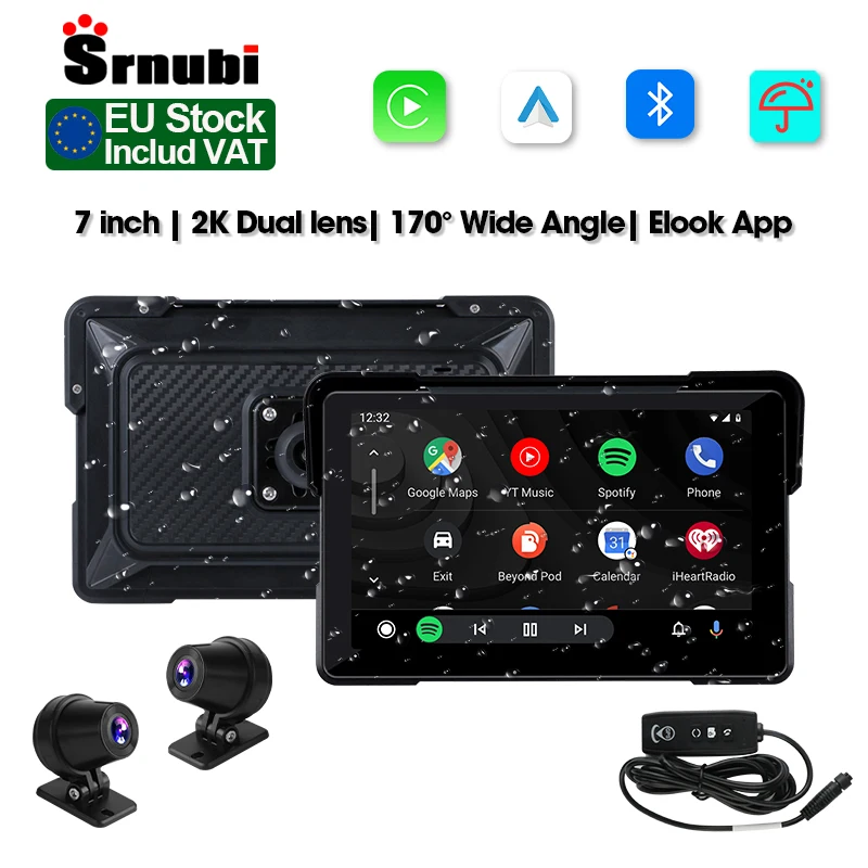 Monitor Portátil para Moto com Tela de 5/7 Polegadas, CarPlay, DVR, Navegação GPS, Wireless CarPlay, Android Auto, Airplay e IPX7