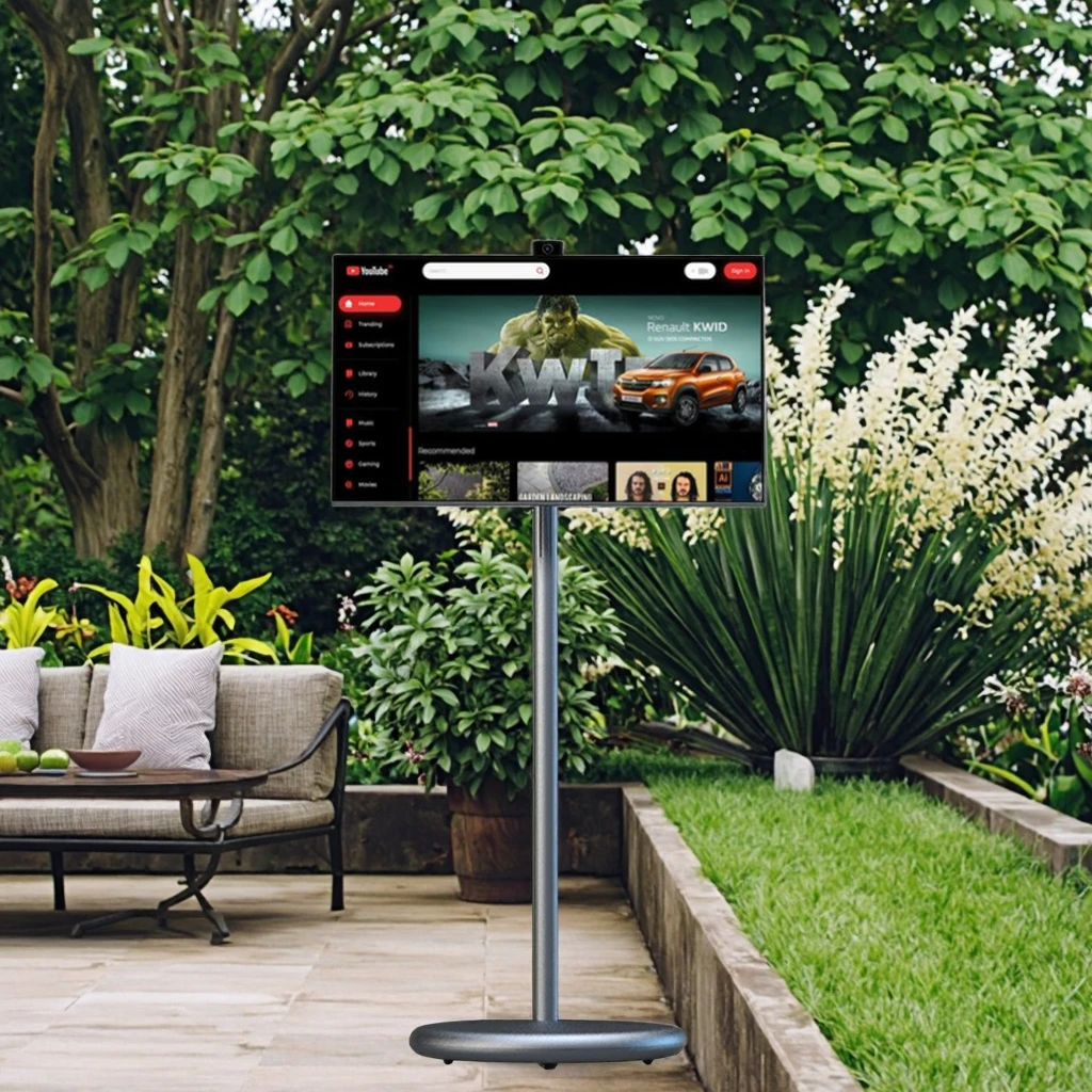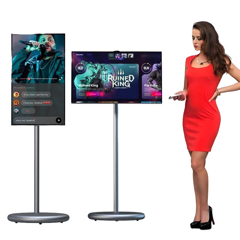 27 32 Polegada portátil android tv led piso-pé inteligente siga-me reprodutor de vídeo branco facebook tiktok compatível bateria operado