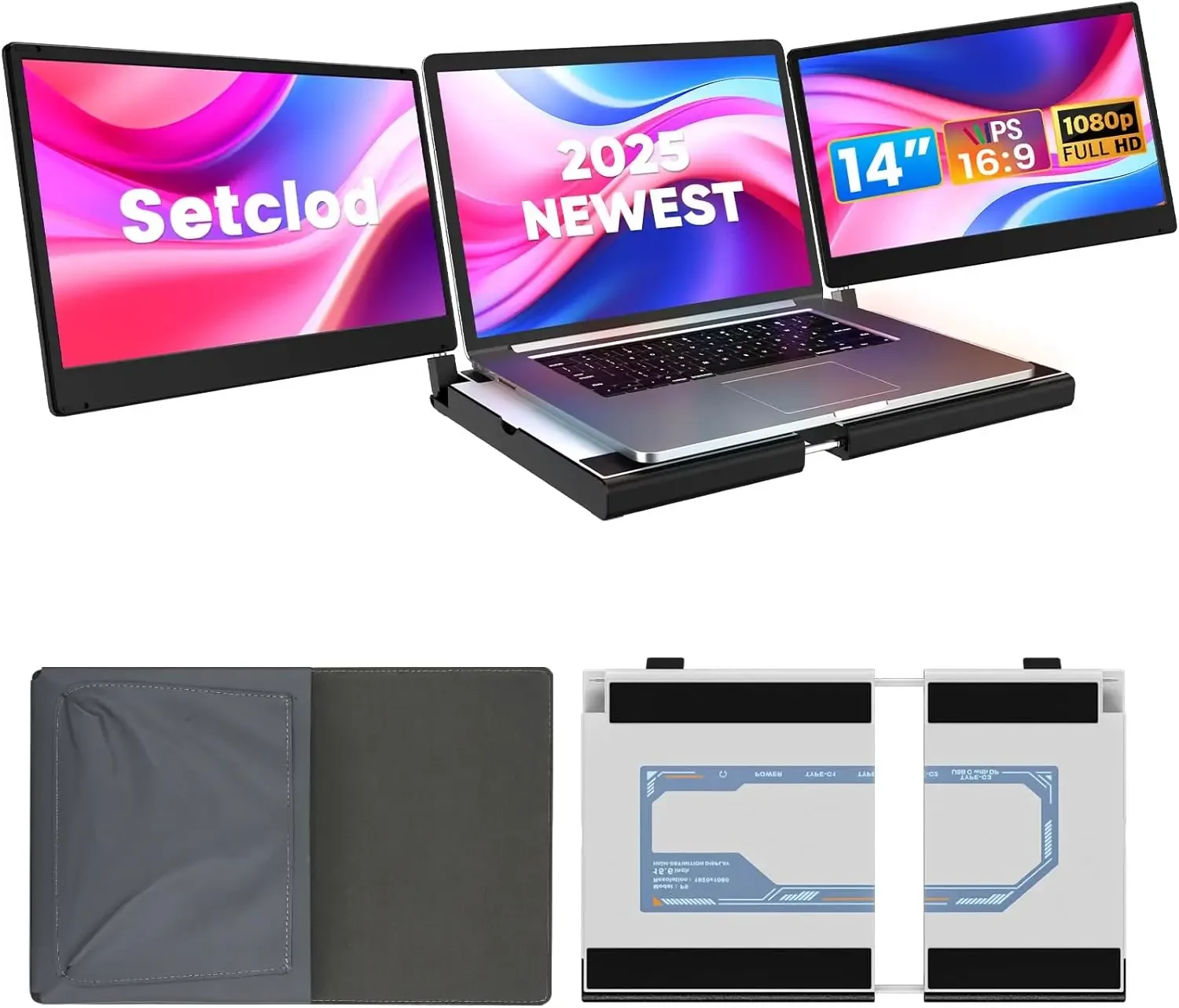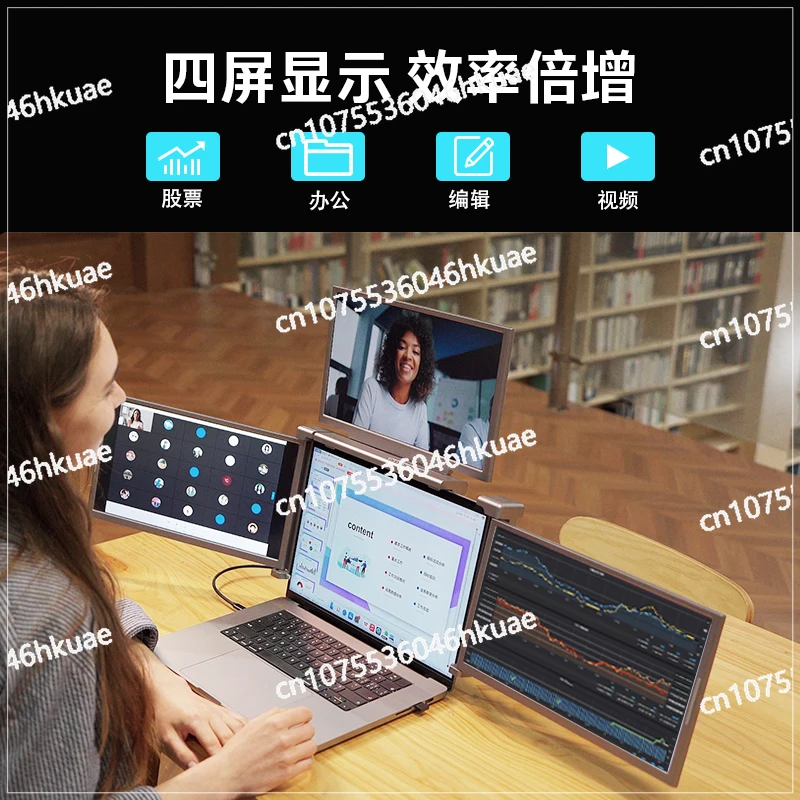 Monitor portátil de três telas de 14 polegadas, subtela de notebook de três telas de primeira linha, tela de expansão de escritório de negociação de ações