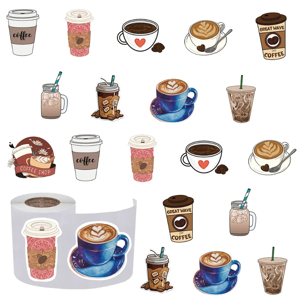 500 Adesivos de Café (Etiquetas de 1 Polegada / 10 Padrões) para Capas de Celular, Laptops, Notebooks, Malas, Skates e Adesivos Estéticos DIY