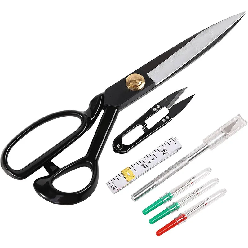 Tesoura de alfaiate de aço manganês preto, 9-12 Polegada tesoura profissional para roupas costura tecido corte de couro ferramenta doméstica